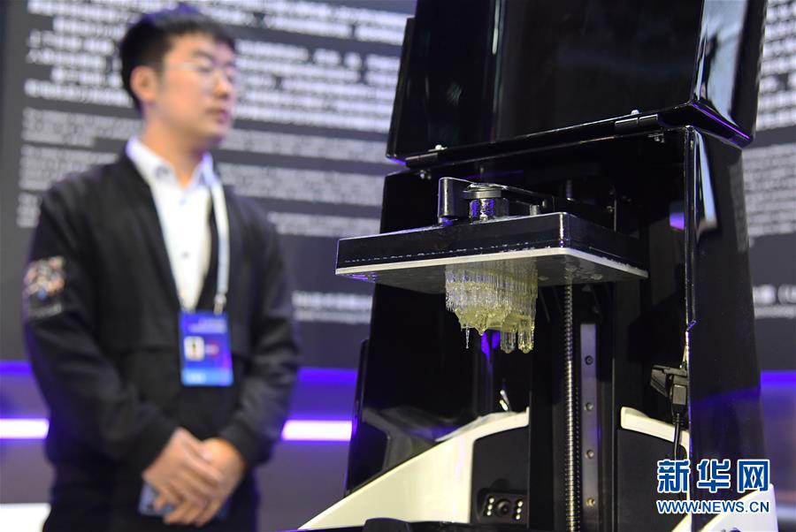 10月16日,这是在展览现场拍摄的超高速光固化技术3D打印机。