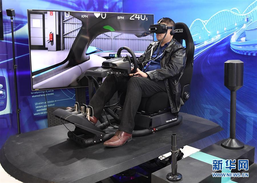 10月16日,在展览现场,工作人员在展示VR模拟驾驶。新华社发(任超摄)