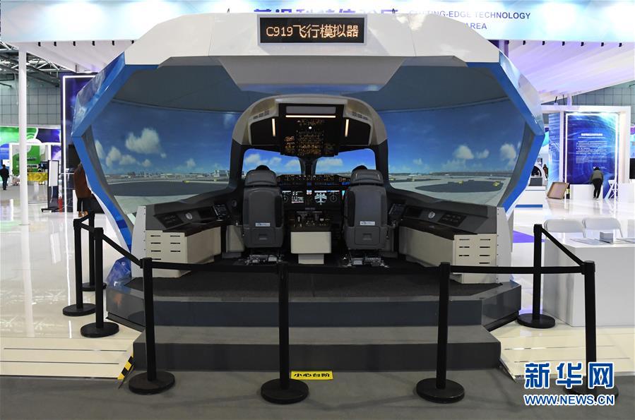 这是10月16日在展览现场拍摄的C919飞行模拟器。新华社发(任超摄)