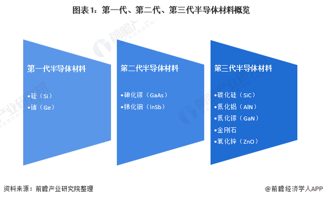 第一代半导体材料是以硅(Si)、锗(Ge)为主,第二代半导体材料是以砷化镓(GaAs)、锑化铟(lnSb)为主。以碳化硅(SiC)、氮化镓(GaN)、氧化锌(ZnO)、金刚石、氮化铝(AIN)为代表的宽禁带半导体材料,被称为第三代半导体材料,目前发展较为成熟的是碳化硅(SiC)和氮化镓(GaN)。